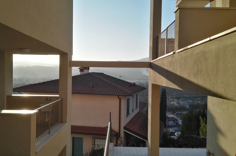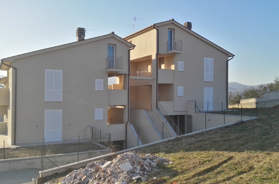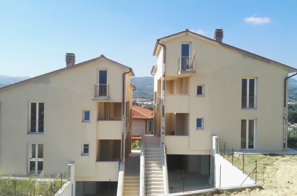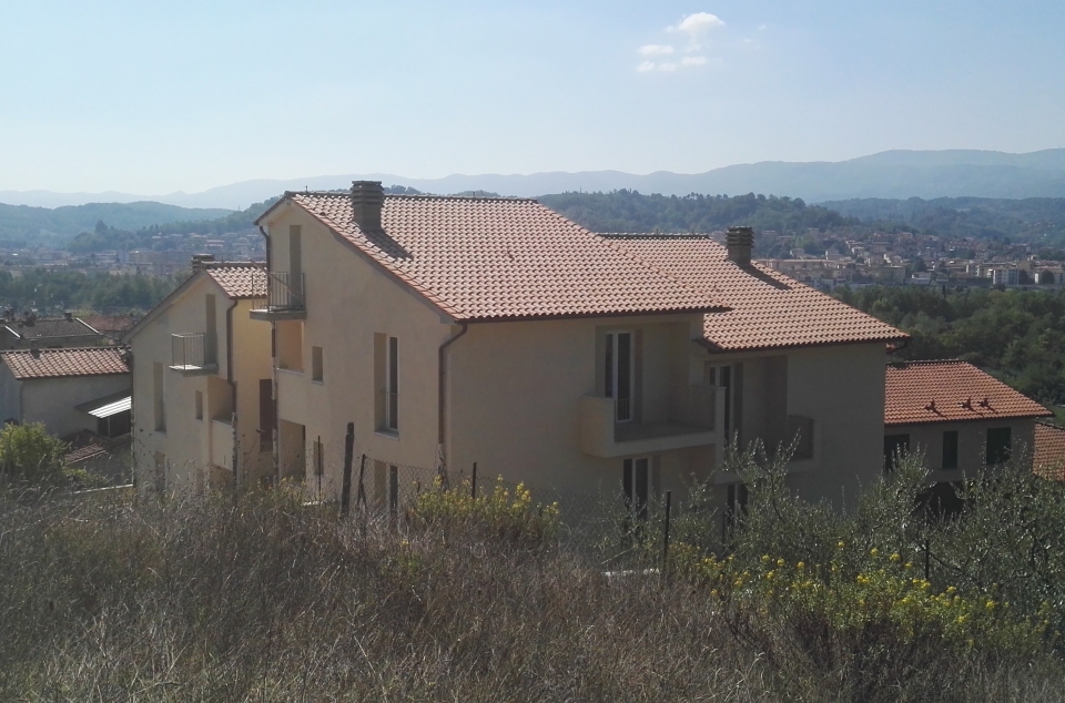 Nuova costruzione a Reggello in località Matassino di quattro unità residenziali su un’area in acclivio con una variazione di quote che vanno da un minimo di m 153,06 slm ad un massimo di m 162,69 slm con una pendenza media di circa il 20%.